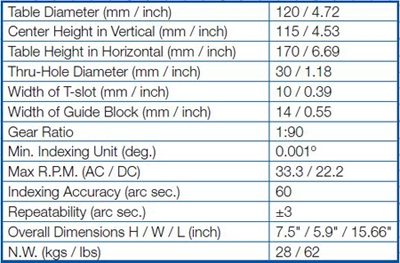Rotary Table Package Includes: