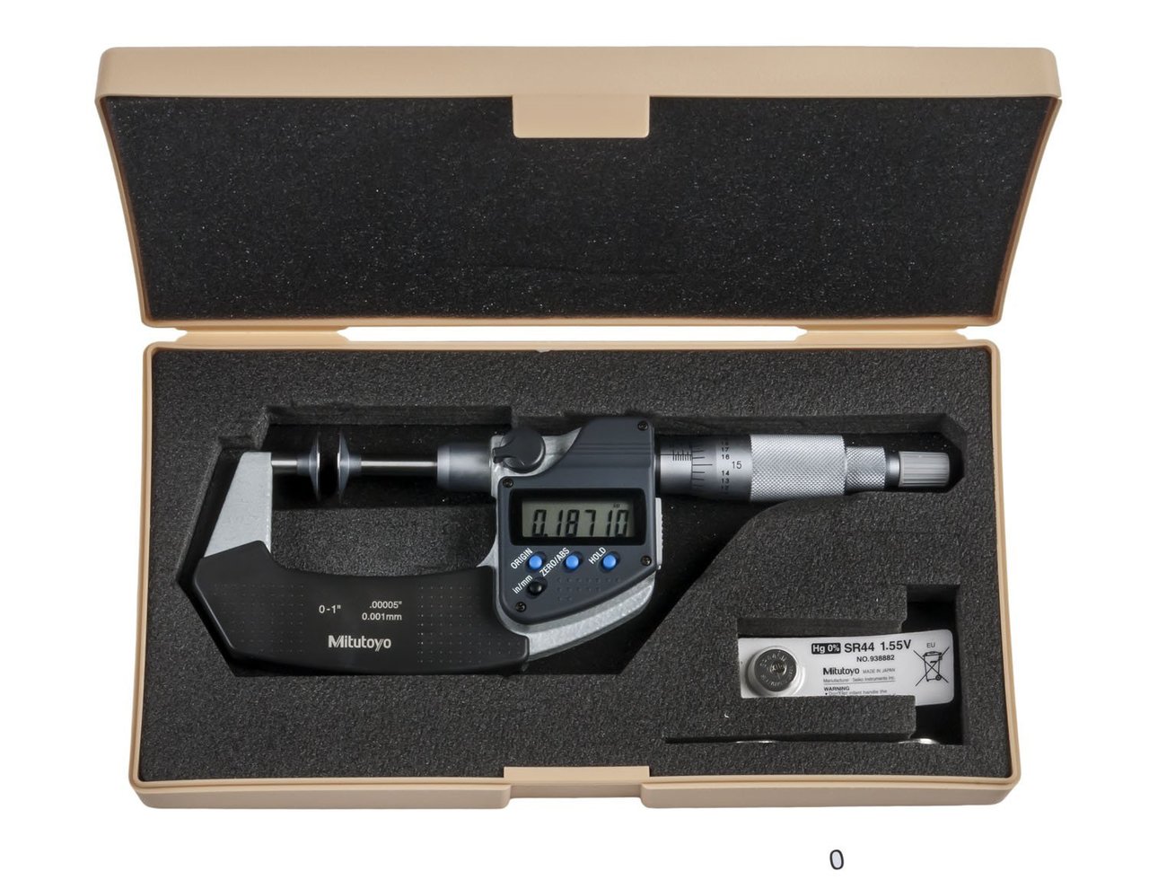 Mitutoyo Disk Micrometer, Non-Rotating Spindle Type, Digital, 0-1"/0-25.4mm - 369-350-30