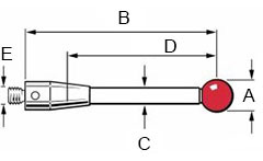 Straight styli are designed to inspect simple features where direct, unobstructed contact with a measured surface is possible. A stainless steel stem offers excellent rigidity and is ideal for applications where weight is not critical. Ruby is regarded as the industry standard for stylus tips. It is one of the hardest materials available and suitable for most applications. Due to adhesive pickup, ruby tips are not recommended for scanning aluminium parts.