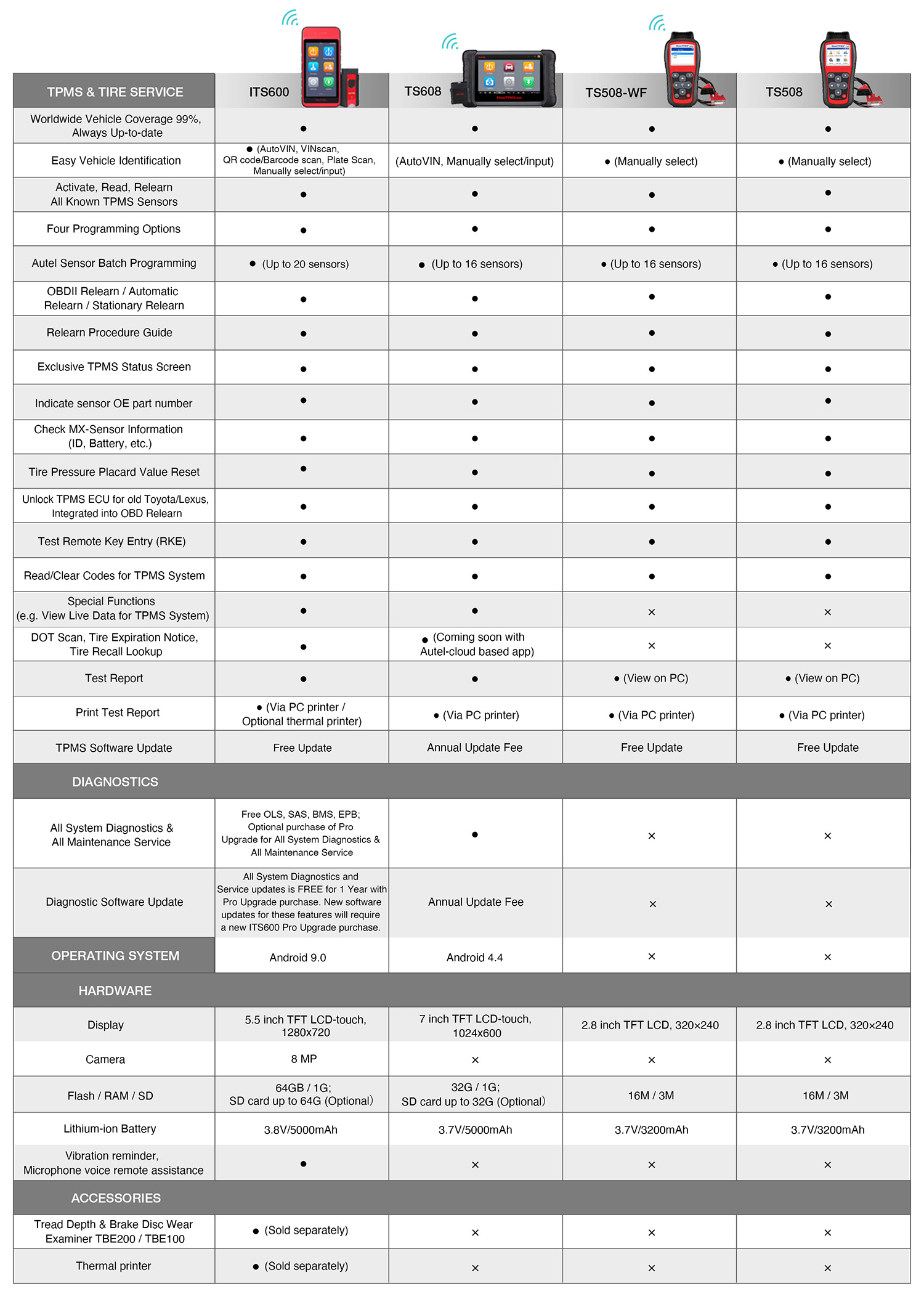 - Precise laser measurement of tread depth & brake disc wear with purchase of Autel TBE100/TBE200