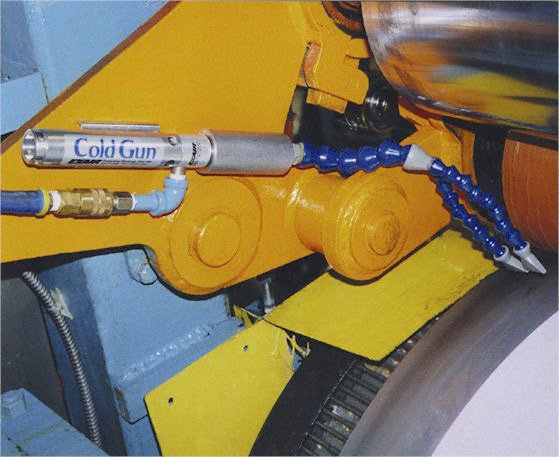 A new solution to an old problem. Heat build up on dry machining operations reduces tool life and machining rates. The Cold Gun Aircoolant System produces a stream of clean cold air at 50°F (28°C) below supply air temperature.