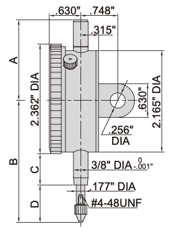 Insize Dial Indicator with Lug Back, 2" Range, .0005" Graduation, 0-50 Dial Reading - 2307-205