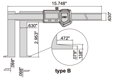 - Buttons Type B: on/off, zero, inch/mm, ABS/REL, hold