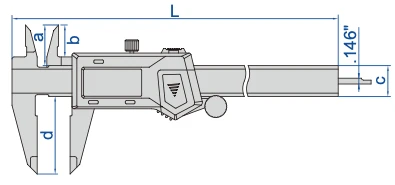 - Buttons: on/off, zero, inch/mm.