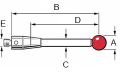 Straight styli are designed to inspect simple features where direct, unobstructed contact with a measured surface is possible. A ceramic stem is lightweight yet very stiff and offers built-in crash protection. Ruby is regarded as the industry standard for stylus tips. It is one of the hardest materials available and suitable for most applications. Due to adhesive pickup, ruby tips are not recommended for scanning aluminium parts.