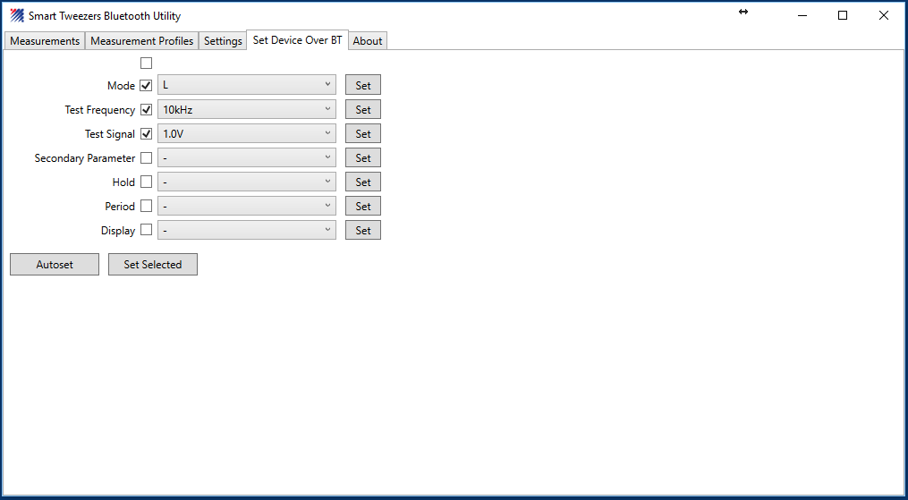 Smart Tweezers Bluetooth Companion for Windows allows to connect ST5S-BT to Microsoft Windows 7/8/10 (Smart Tweezers Bluetooth Receiver is required). The software allows to obtain measurement readings from the connected Smart Tweezers, record measurement stream into Excel-compatible CSV files, set and trigger data tolerance alerts. Alert data can be stored in a set of custom measurement profiles.